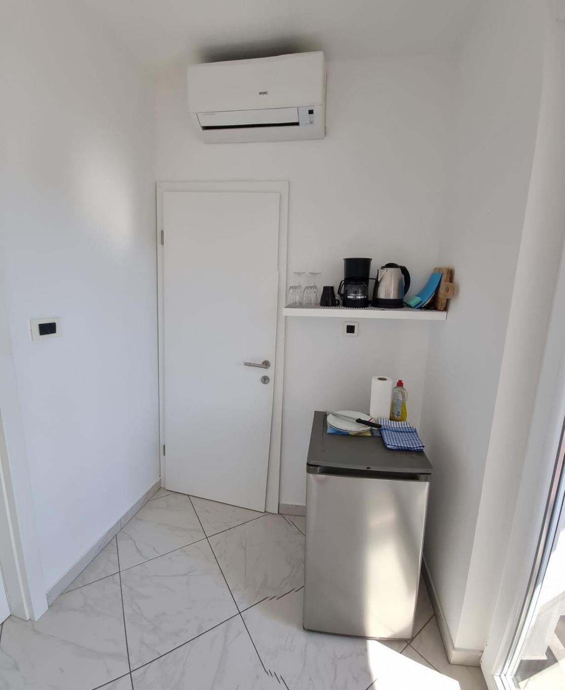 One-Bedroom Apartment. Featuring a private entrance, this air-conditioned apartment is comprised of 1 living room, 1 separate bedroom and 1 bathroom with a shower and a hairdryer. The well-equipped kitchen features a stovetop, a refrigerator, kitchenware and a microwave. Boasting a balcony with sea views, this apartment also offers a tea and coffee maker and a flat-screen TV with satellite channels. The unit offers 2 beds. ;