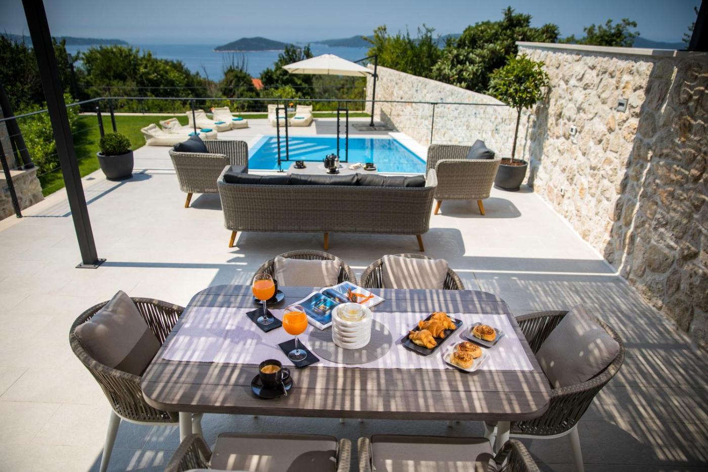 Villa with Private Pool. This villas special feature is the pool with a view. Featuring a private entrance, this air-conditioned villa comprises 1 living room, 2 separate bedrooms and 2 bathrooms with a shower and a hairdryer. Guests will find a stovetop, a refrigerator, a dishwasher and kitchenware in the kitchen. The villa also provides guests with a barbecue. Boasting a terrace with sea views, this villa also provides a washing machine and a flat-screen TV with satellite channels. The unit offers 3 beds.