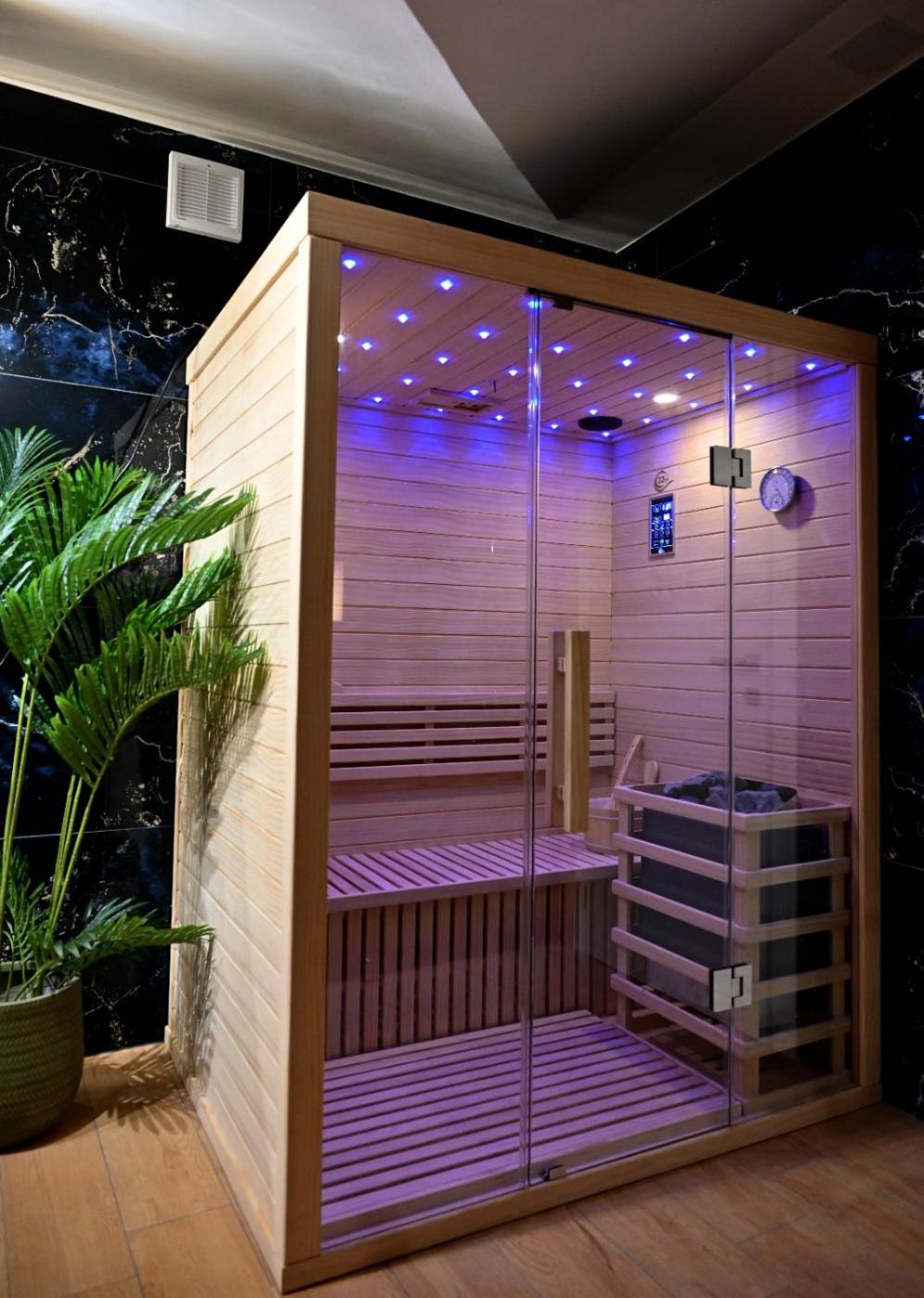 One-Bedroom Apartment. This luxurious apartment features a hot tub, a spa bath and a sauna. This spacious apartment comes with 1 living room, 1 separate bedroom and 1 bathroom with a walk-in shower and free toiletries. The well-fitted kitchen has a stovetop, a refrigerator, kitchenware and an oven. The air-conditioned apartment features a flat-screen TV, a washing machine, soundproof walls, a tea and coffee maker as well as garden views. The unit has 2 beds.