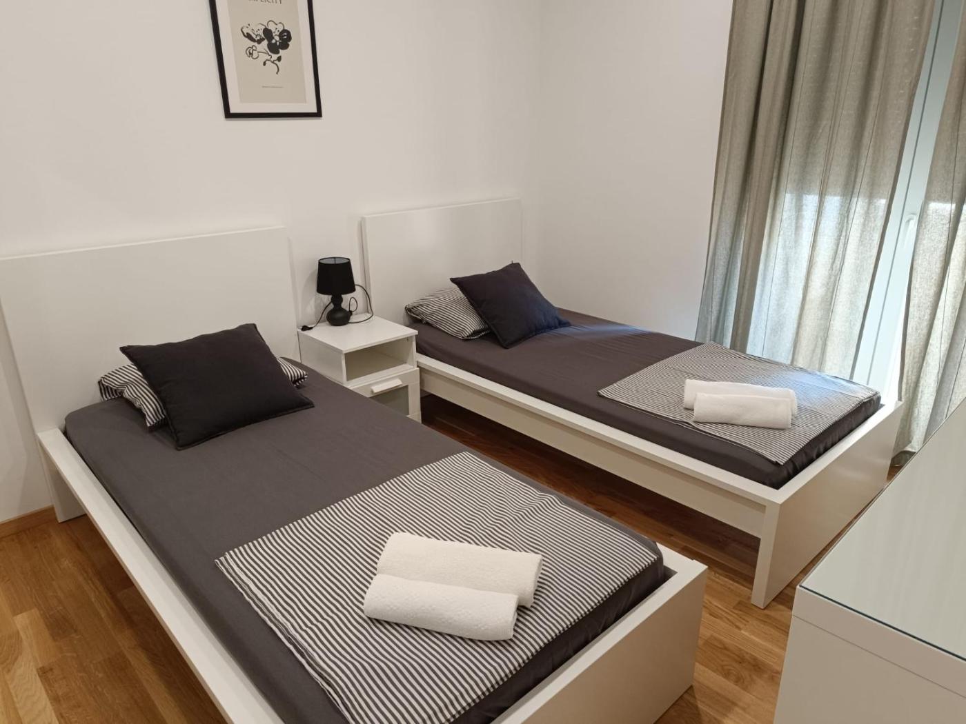 Two-Bedroom Apartment. This spacious apartment includes 1 living room, 2 separate bedrooms and 1 bathroom with a shower and free toiletries. In the fully equipped kitchen, guests will find a stovetop, a refrigerator, a dishwasher and kitchenware. This air-conditioned apartment features a dining area, a flat-screen TV with cable channels soundproof walls and a terrace. The unit has 3 beds.